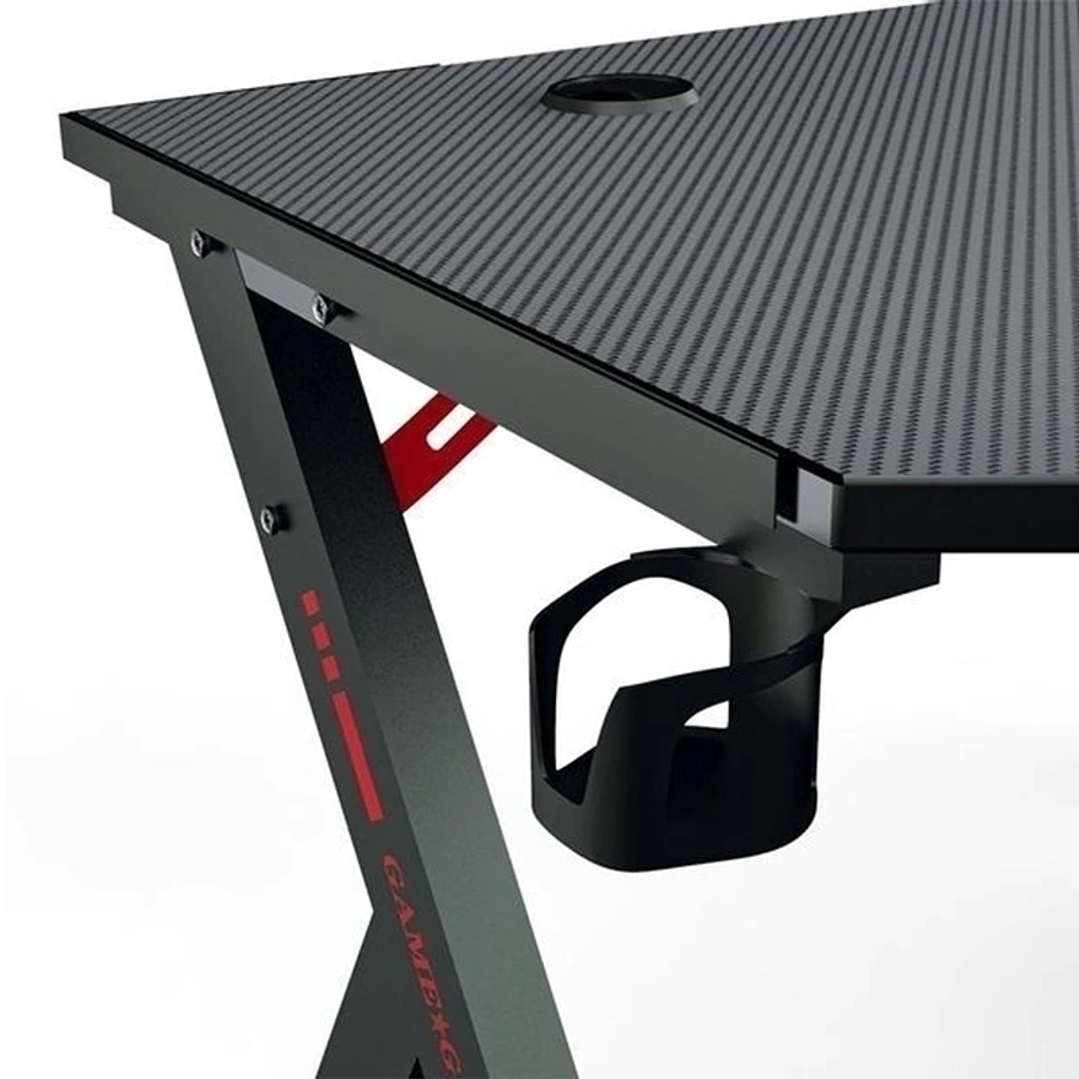 Diseñado para brindarte comodidad y estilo en tus partidas, el Escritorio Gamer GTC ofrece una superficie amplia, resistente y equipada con detalles pensados para los verdaderos gamers. Su estructura metálica en forma de “Z” garantiza estabilidad, mientras que la superficie de madera recubierta en melamina es duradera y fácil de limpiar.